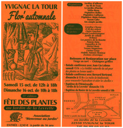 Flor’Automnale a vue passer les années à s’enraciner malgré le vent, la pluie et les vilains petits microbes. Et maintenant chaque troisième week-end d’octobre refleurissent les exposants, pépiniéristes et artisans, aux palettes de couleurs et parfums chatoyants. Le jardin en robe d’automne les accueille au détour de ses structures et de ses bosquets ainsi que la gentilhommière du 16e siècle prêtant ses dépendances comme lieux d’exposition.